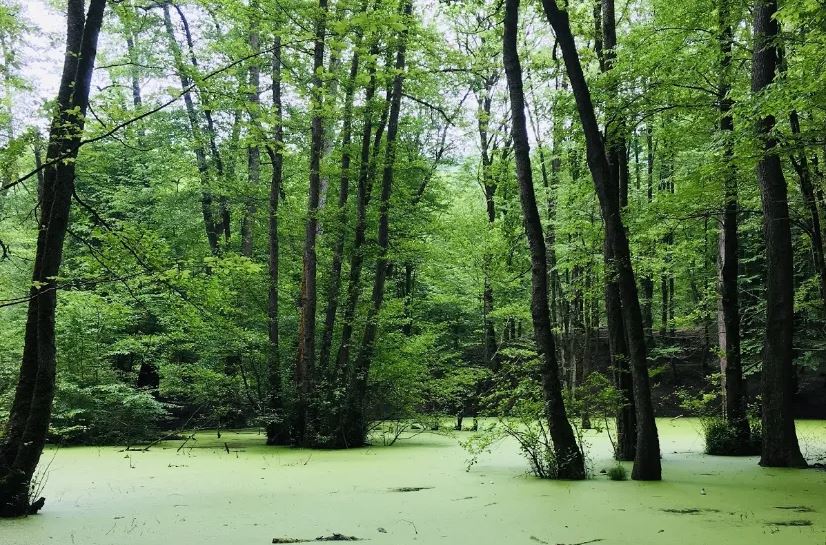 یکی از دلایل زیبایی این منطقه پوشش گیاهی متنوع آن است. در اطراف آن درختان راش، بلوط، ممرز و آزاد دیده میشود و گیاهانی مثل سوسن کبود، نیلوفر آبی، سرخس و علف هرز هم در داخل مرداب رشد میکنند. این تالاب احتمالا به دلیل زلزلهای در دوران باستان شکل گرفته و محلیها اعتقاد دارند زمانی دریاچهای بوده و به مرور زمان و عوامل طبیعی به تالاب تبدیل شده است. اگر از دیدن پرندگان و حیوانات لذت میبرید، میتوانید منتظر دیدن اردک، غاز، لکلک و قو، ماهی کپور و اردکماهی، قورباغه و وزغ، مار و لاکپشت، گراز و روباه در اطراف این مرداب باشید.