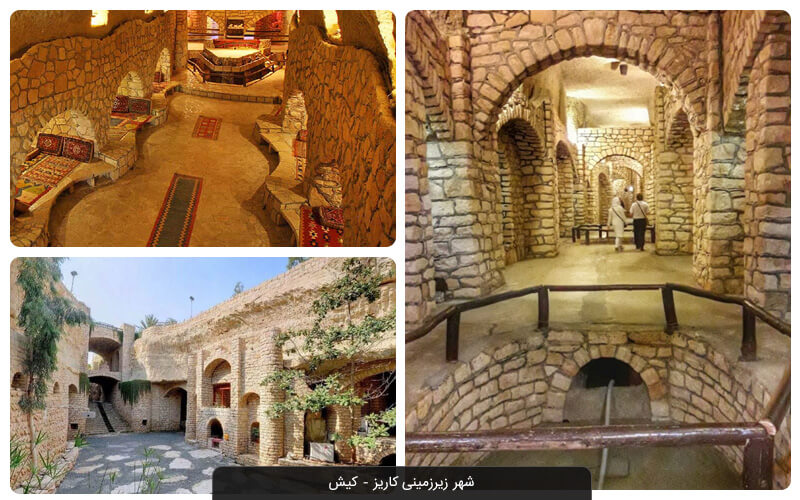 قدمت قنات های کیش به ۲۵۰۰ سال پیش باز میگردد و آب آشامیدنی ساکنان جزیره را تأمین میکرد که امروزه به یک شهر زیرزمینی شگفت انگیز با مساحت ۱۰۰۰۰ متر مربع تبدیل شده است که اکنون به آن کاریز کیش میگویند. کاریز فصل استثنایی جدیدی را برای همه دوستداران گشوده است. با توجه به عمق کم کیش، عمق شهر زیرزمینی کاریز حدود ۱۲ متر زیر زمین با ارتفاع ۸ متر است. این شهر زیرزمینی شامل ۳ قنات و ۲۷۴ حلقه چاه است. پس از داخل شدن به این شهر زیرزمینی، به سقف مرجانی توجه داشته باشید که فسیلهای باستانی ماهی و صدفی را در خود جای داده است که به گفته مردم محلی مربوط به میلیونها سال پیش است. همچنین جالب است بدانید که کاریز در تمام فصول دارای درجه حرارت خنک و ثابتی است.