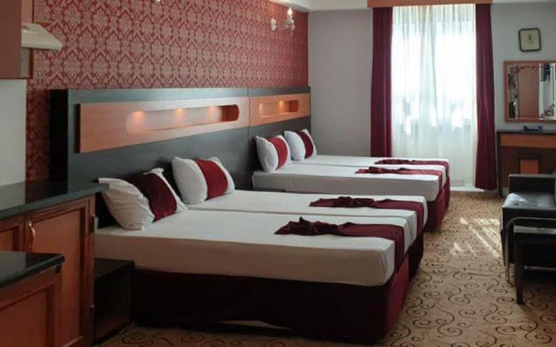 این هتل دارای انواع اتاق است که عبارتند از اتاق ۲ تخته، اتاق ۳ تخته، اتاق ۴ تخته که براساس تعداد نفراتتان می توانید اتاق مورد نظر را انتخاب نمایید. همچنین اقامت برای کودکان زیر ۶ سال در صورت عدم استفاده از سرویس اضافه رایگان بوده و برای افراد بالای ۷ سال هزینه کامل دریافت می گردد.