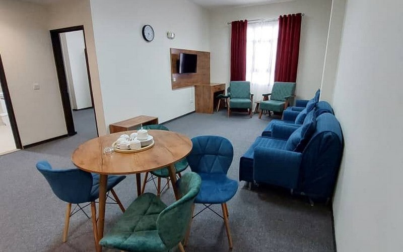 انواع واحدهای اقامتی عبارتاند از سوئيت دو نفره با یک تختخواب دوبل، سوئيت سه نفره دارای یک تختخواب دوبل و یک کاناپه تخت شو، سوئیت چهار نفره شامل یک تختخواب دوبل و دو کاناپه تخت شو و در نهایت سوئيت پنج نفره میتوانید از یک تختخواب دوبل و سه کاناپه تخت شو بهرهمند شوید. در واحدهای این مجموعه احساس امنیت و آرامش خواهید داشت و در همه واحدها یک اتاقخواب مجزا، سالن نشیمن و آشپزخانه وجود دارد. همه سوئیتها قبل از ورود میهمان نظافت میشوند، سپس در صورت درخواست مسافران نسبت به نظافت آن اقدام میشود. آشپزخانه شامل سرویس چایخوری و کتری برقی، میز ناهارخوری، امکانات پختوپز، یخچال و گاز رومیزی، ظروف آشپزی و سرو غذا هستند. در قسمت سالن واحدها نیز امکانات دیگر مانند تلویزیون، میزتحریر، پک بهداشتی، حوله و دمپایی، سشوار، تلفن، مبلمان، جاکفشی، کمدهای لباس و چمدان، سیستم گرمایشی و سرمایشی، سیستم تهویه مطبوع هوا وجود دارند. توجه داشته باشید که در سوئیتهای دو نفره و سه نفره میز ناهارخوری وجود ندارد و سرویس بهداشتی فقط ایرانی است. در سوئیتهای چهار نفره و پنج نفره نیز سرویس بهداشتی ایرانی و فرنگی مجزا هستند. لطفاً دقت داشته باشید که در هنگام ورود به سوئیتها کفشهایتان را دربیاورید و با دمپاییهای موجود قدم بزنید. همچنین به دلیل قوانین رایج در این هتل به حیوانات خانگی اجازه ورود داده نمیشود. در نظر داشته باشید هزینه اقامت کودکان تا ۲ سال در صورت عدم استفاده از سرویسهای هتل رایگان است. در هریک از واحدها مینی بار تعبیهشده است که در صورت استفاده از وسایل آنها باید هزینه مربوطه را بهصورت جداگانه پرداخت کنید.