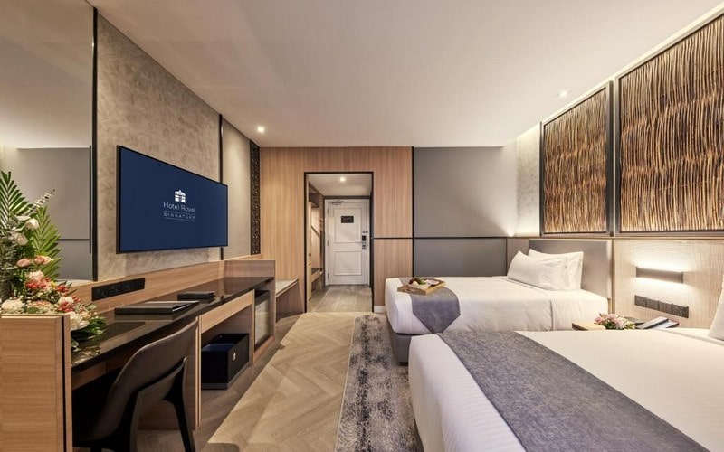 واحدهای اقامتی زیبا و راحتی در مجموعه Hotel Royal Signature وجود دارد. پنجره اتاقها به سمت نمای زیبایی از شهر یا استخر باز میشود. تنوع واحدهای اقامتی هتل رویال سیگنیچر شامل اتاقهای دلوکس دوبل، سوپریور، دلوکس پلاس، دلوکس تویین، اگزکیوتیو، خانواده و سوئیتهای اگزکیوتیو و خانواده است. همهی واحدها دارای سیستم تهویه مطبوع و تلویزیون صفحهتخت هستند. مینیبار، چایساز، اتو، میز، تلفن و کمد لباس در تمام اتاقها موجود است. همچنین هر واحد دارای یک حمام خصوصی با دوش، سشوار و لوازم بهداشتی رایگان است. برخی از واحدها دارای ظرفیت پذیرش نفر اضافه هستند و سرویس اضافی در صورت موجود بودن به مهمانان ارائه میشود.