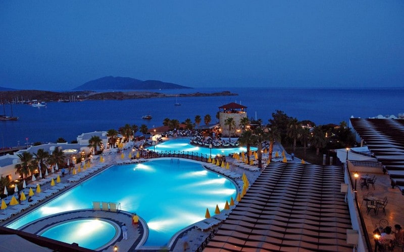 هتل سلکتوم کالرز بدروم یکی از هتلهای ۵ ستاره و لوکس بدروم است که با نام آستریا ریزورت بدروم نیز شناخته میشود. این هتل در حاشیه دریای اژه و خلیج گومبت واقع شده و ساحلی اختصاصی دارد که هتل را به دریا پیوند میدهد. منطقه گومبت بیشتر به خاطر نایتلایفهای هیجانانگیزش و همچنین رنگ آبی منحصربهفرد دریایش بین خریداران بلیط هواپیما بدروم محبوب شده است. با اقامت در این هتل میتوانید منظرههای زیبای خلیج و همچنین خانههای قدیمی و زیبای بدروم را از اتاق خود تماشا کنید. جاذبههای دیدنی بدروم مثل آمفی تئاتر و قلعه بدروم در فاصله ۳ تا ۵ کیلومتری از این هتل واقع شدهاند.