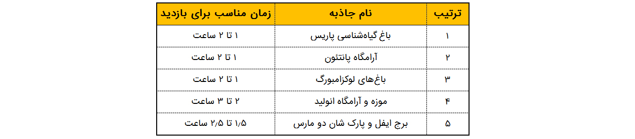 - معمولا شهرهای گردشگرپذیر جهان، خدمات بلیط یکپارچه برای استفاده مجموعهای از موزه ها و مکان های دیدنی را ارائه میدهند. پاریس هم چند کارت اشتراک ویژه گردشگران دارد که به شما کمک زیادی میکند. برای نمونه Paris Museum Pass و Paris Attractions Pass به شما امکان بازدید از چند موزه و جاذبه گردشگری اصلی پاریس با صف کوتاهتر و هزینه کمتر را میدهند.