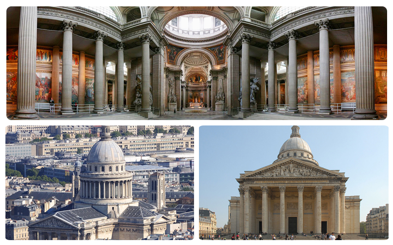 ساختمان یادبود یا آرامگاه پانتئون (Panthéon) بر بالای تپهای در بخش تاریخی پاریس جای گرفته است. این ساختمان باشکوه در ابتدا به عنوان کلیسا ساخته شد. اما در زمان انقلاب فرانسه تصمیم گرفته شد که کاربری آن تغییر کند و از آن به عنوان یادبود بزرگان کشور فرانسه استفاده شود. هم معماری بیرونی مجموعه بسیار باشکوه است و هم نقاشیهای دیواری درون گنبد و دیوارهای آن، بسیار زیبا هستند. در این آرامگاه مقبره و تندیسهایی از بزرگان کشور فرانسه مانند ژان ژاک روسو، ولتر، ویکتور هوگو، مادام کوری و پیر کوری، امیل زولا و تنی دیگر قرار دارد.
