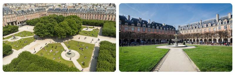 میدان ووژ (Place des Vosges) یا میدان سلطنتی، قدیمیترین میدان طراحی شده در پاریس است که پیشینه آن به سال ۱۶۰۵ تا ۱۶۱۲ برمیگردد. این میدان توسط هنری چهارم، پادشاه فرانسه ساخته شد و یک کاخ اقامتی پادشاهی فرانسه بود. این میدان مربعی شکل با آبنمایی در وسط و کاخی که پیرامون آن را دربرگرفته است، یک تفرجگاه برای اهالی پاریس است.