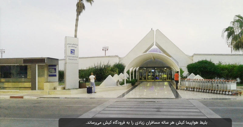 فرودگاه بینالمللی کیش (KIH) در سال ۱۳۵۶ احداث شده است و طی سالها پروازهای داخلی و خارجی متعددی را میزبانی کرده است. آمار بالای پروازهای انجامگرفته در این فرودگاه آن را در لیست پرترددترین فرودگاههای کشور قرار داده است. این فرودگاه امکانات رفاهی نسبتاً کاملی را در اختیار مسافران قرار میدهد. علاوه بر آن این فرودگاه جایگاه تشریفات ویژه دارد و خدمات VIP و CIP نیز در آن ارائه میشود. ازآنجاکه فرودگاه کیش در ناحیه مرکزی جزیره قرارگرفته است، مسافران ورودی و خروجی کیش میتوانند در مدتی کمتر از ۱۵ دقیقه میان فرودگاه و مرکز جزیره جابهجا شوند. تنها وسیله نقلیه برای تردد در این مسیر تاکسیها هستند. البته رنت ماشین هم از دیگر گزینههای جذابی است که مسافران میتوانند با مراجعه به دفاتر رنت کار مستقر در فرودگاه کیش در همان بدو ورود اقدام به کرایه خودرو کنند.